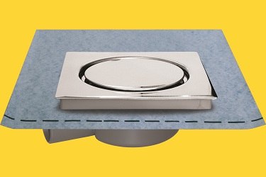 Padlóösszefolyó krómozott rozsdamentes fém fedéllel, fóliával – 15 x 15 cm – 7,5 cm beépítésű